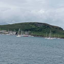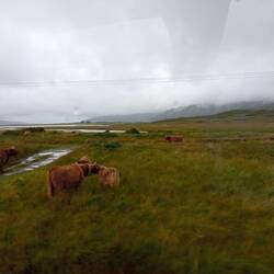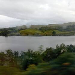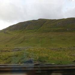 We have passed Loch Awe as the train speeds on to Oban I am overawed by the scenery even in the rain and overcast day that it is, we're passing waterfalls cascading from the munros, and I notice huge slips of shingle sliding from these monsters.