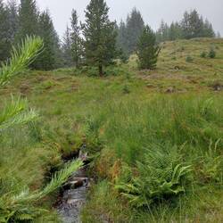 And of course the worst of it hit as I reached the top of the climb .... An absolutely beautiful hill climb but oh my it took some going. I tightened my grip on my walking poles and took the incline into Ewich Forest.