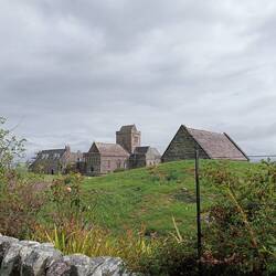 An early morning rise today to get the ferry to Craignure on Mull, and on to Iona by further bus then ferry. I could hardly see out of the hostel dining room window for the early morning mist at 5.30 a.m. but proceeded to ready for the day.