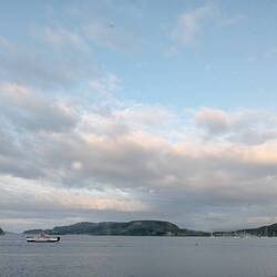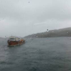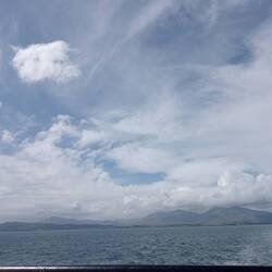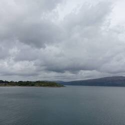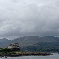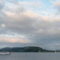 And what a journey, the mist wrapped around us as we sailed into the middle of the sea journey to Mull when the rain poured down sending most people back inside. As I sat in that rain watching the drama unfold again, it appeared that we came out of a wall of shrouded mist toward Mull. We seemed invisible for a time, as we became engulfed in the mist. I was compelled to sit out here alone, could not bring myself to sit inside when all of the dramatic weather was right in front of us. Clouds gathering and dissipating, mist rolling as the sun tried to penetrate through giving an awesome light and dark hue.