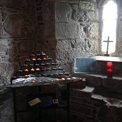 Another ride in a wee ferry which tossed and turned over the water between Fionnphort and Iona. It was only a ten minute journey, over, all too soon. The Abbey itself is still there and as I wandered reflectively through those cloisters and chapels I lit a few candles praying for healing for friends and family. The ruins of a mediaeval nunnery cemented my thoughts and information gleaned that indicates this was the life for many young women who had no wish to marry and be left in peace to follow their own passions within the convent.