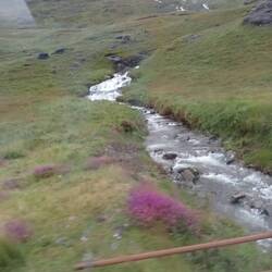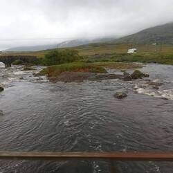 After about 5kms into the forest, the path turns into a massive descent. Really it's an up and down descent and mostly in rivulets ...having to watch every step down those wet rocks and through deep puddles, feet are soaking, as is everything else, grateful for my poncho but my jacket and everything underneath was soaked as well. The last of the walk was through carpets of blooming beautiful Heather, I've never seen such a carpet and it was glorious to behold.