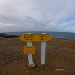 Heute morgen aufgewacht bin ich natürlich gleich nochmal zum Strand runter um zu schauen ob ich nochmal Delfine sehe. Und tatsächlich; es waren bestimmt wieder 5-10 Stück in der Bucht. Einen besseren Start in den Tag kann man sich nun wirklich nicht vorstellen. Ich habe mir also meine cracker und meinen Humus geholt, gutes Frühstück ist was anderes, und bin wieder an Strand Delfine watchen gegangen. So gegen 10 hab ich mich dann auf den weg gemacht. Meine Tankfüllung war nun schon kurz vor dem großem bösem “E”, aber ich wollte unbedingt noch zum slope point. Das ist nämlich der südlichste Punkt Neuseelands. Nach 10 km gravel road, wurde mir dann klar dass es vielleicht doch nicht der genialste plan war aber zum umdrehen war es dann auch schon zu spät. Ich also weiter über Hügel, durch Täler, hoch und runter, bis ich endlich angekommen bin. Der point ist über einen kleinen walk zu erreichen der über eine Schafweide führt. Dass war dann doch sehr idyllisch (mal ganz abgesehen davon dass die Schafe dringend ein treatment a la Julia gebraucht hätten, die sahen doch sehr krank aus und ich konnte flightbites erkennen…). Je näher ich an den Punkt kam so stärker wurde der Wind. Alter Finne! Da gingen wirklich arktische Winde, die mich beinahe weggepustet hätten. Der Punkt an sich war nix besonderes, aber wenn man dann so auf das Meer Start und einem klar wird dass da nix mehr außer der Südpol kommt, dann fühlt man sich schon so ein bisschen als stände man am Ende der Welt.
