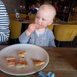 Morgens um 5:30h ist Mats wach und die Nacht etwas zu früh zu Ende. Beim morgendlichen Brötchenkauf wird noch etwas Schlaf nachgeholt.