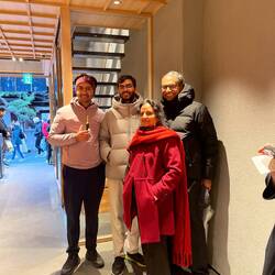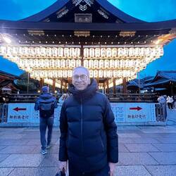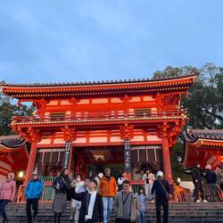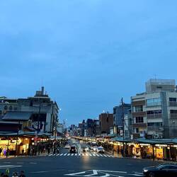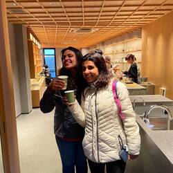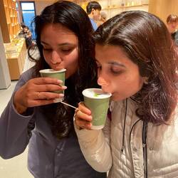 We headed out towards the Gion district, one of Kyoto’s most popular areas. Our first stop was the Kiyomizu-dera shrine. After spending some time there, we walked along the bustling streets of Gion, lined with places to eat and shop. We tried some Matcha tea and tried some Japanese sweets. We also saw Matcha latte being expertly prepared by hand. Our next stop was the Maruyama Park and the Yasaka shrine. Both moms were a bit tired at this point so I stayed with them and we rested while the rest of the group went inside the park to see the Yasaka shrine, which they said was impressive, especially the lights. The Sakura was non-existent, mostly because of the weather - the rain had dropped the temperature and the flowers had not bloomed yet. Divya and Nishant wanted some fresh juice. As they went to a street vendor requesting ‘Orange juice’ it was indeed amusing to see the vendor blend the juice inside 1 orange, dip a straw and hand them an orange juice.