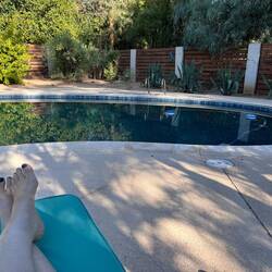 ¡Pero este lugar es increíble! Tengo mi propio dormitorio con baño privado en el ala de invitados de nuestra casa anfitriona, Diana. ¡¡Tiene un hermoso jardín desértico y una piscina!! Los amigos me dicen que este es un barrio encantador cerca de todo. Todavía no lo sé. Recién me estoy adaptando. Mis maletas están desempacadas y las cosas se guardan para el mes.