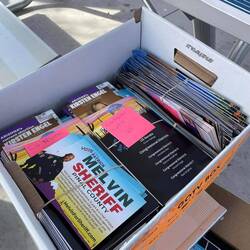 And for good measure, all other literature strewn about the office was needing to be deconstructed and rubber banded in piles of 40. Ah, the glamorous work of election campaigning.