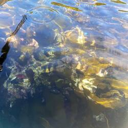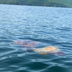 The sun also meant that we could see everything under the water. Lots of jellyfish, starfish, anemones, little fish, and the kelp. The kelp was absolutely gorgeous. Forests of them grew to great lengths and widths - bull kelp and bridal veil kelp shimmered under our boats.Read more