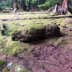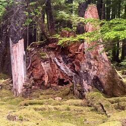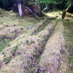 He showed us around the site and described the long houses visible and now covered with moss. The houses were constructed with these impossibly large trees as beams and planks. Half of the house was below grade with three layers on the perimeter where people slept. The center was large enough to accommodate about 50 people. Pretty cool looking. I’m not sure how they raised with roof beams, but we got a lesson on how they raised the totems that fronted each of the long houses.
