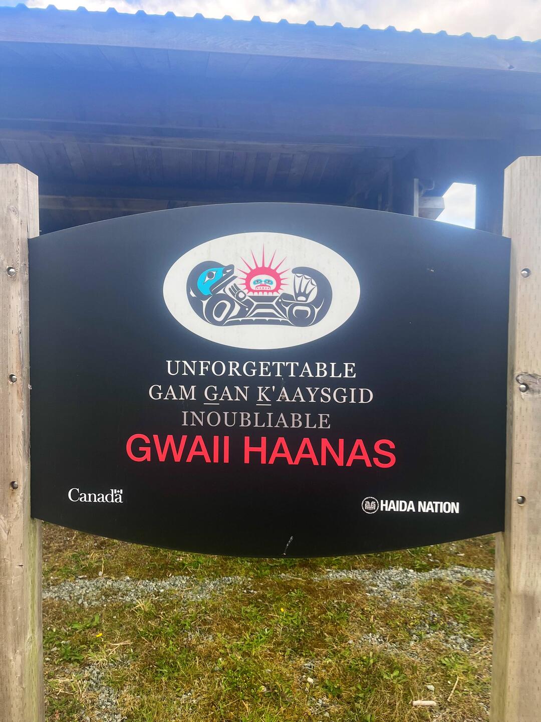 Visiting a Watchman site is a privilege. Gwaii Haanas (Canadian National Park) has been home to the Haida peoples for about 14,000 years and encompasses the southern half of all of Haida Gwaii. We met Sean, a Watchman, who took his family down to Tanu Island each summer for his “vacation” and to tell the history and stories of the Haida and their environs. They are also there to guard the sites. Archeologists have harvested many, many artifacts including bones… from these sites.