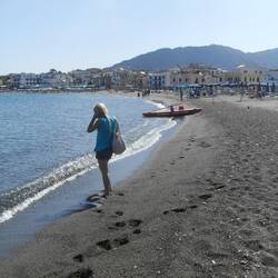 Mattinata in spiaggia e due tuffi in piscina prima di prendere il traghetto da Casamicciola Terme per arrivare a Napoli e prendere il volo dell 18 per Milano.