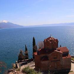 Ohrid liegt am gleichnamigen See 🏞 Dieser ist ca. 300m tief und ist einer der ältesten Seen der Welt, wie auch Ohrid eine der ältesten Städte Europas ist.