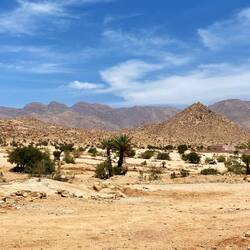 Es dauert, es zieht sich, der Weg durch die Steinwüste aus Granit. Staubig, karg, bizarr und fast lebensfeindlich ist diese Gegend. Doch plötzlich schiebt sich wieder grünes Leben zwischen die Steine und schließlich liegt Tafraout, eine Kleinstadt im Gebirge des Mittleren Atlas vor uns. Es herrscht reges Treiben in dem Städtchen und wie wir schnell bemerken kennt man sich und es scheint, dass jeder mit jedem verbandelt ist.