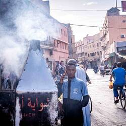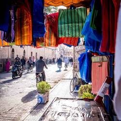 Für einen erneuten Bummel nach dem Essen war dann irgendwie die Luft raus, vor allem, weil uns ein berberischer Händler gar nicht unfreundlich aber souverän im besten Englisch in seine Werkstatt einladen wollte. „Just look, come and look, it’s good for eyes. It would be a pleasure for me if your shoes will touch my house …“ usw. Puuuuh - anstrengend - und wenn der Mann nicht zieht, wird die „Madame“ nochmal gleichermaßen vollgetextet - wie gesagt alles andere als unfreundlich, aber dennoch für uns zu aufdringlich.