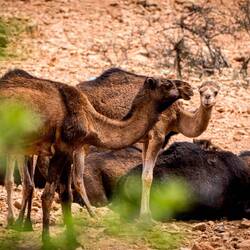 Haben wir dann natürlich sofort auch gemacht, um keine 5km weiter dann eine große Dromedar-Herde mit Hirten völlig entspannt an einer Wasserstelle zu treffen. Und diesmal grüßte der Hirte wirklich freundlich zu uns herüber, bevor er neben seiner Herde sein Gebet Richtung Mekka verrichtete. Wir drei konnten in aller Ruhe die Tiere anschauen, beobachten und fotografieren.