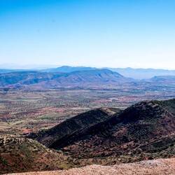 Mit der Sonne im Gesicht machten wir uns auf zur zweiten Etappe über Beni-Mellal nach Ouzoud. Oben mit Schnee gezuckerte Berge (was für die Jahreszeit untypisch ist), darunter grüne Täler, immer wieder spektakuläre Ausblicke und Foto-Stopps. Beate sagte, dass das Fahren durch die Berge verdammt anstrengend sei, aber das das Verarbeiten der nicht enden wollenden Eindrücke fast noch mehr Energie verbraucht. So war es absolut.