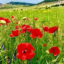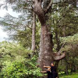 Wir machten uns zu Fuß auf den Weg dorthin und die Wanderung führte uns leicht ansteigend einen Pfad entlang, den man so bei uns nicht mehr findet. Rechts und links des Weges gab es eine irre Vielfalt an Blumen, jede Menge Schmetterlinge, die in Gruppe um einen kreisten (aber nicht fotografiert werden wollten) und eben diese unmarokkanische Landschaft. In den Zedernwäldern herrschte mit Betreten eine eigene Stimmung. Beate zählte 5,5 Arm-Spannweiten um einen Baum herum. Man kam sich sehr klein vor.