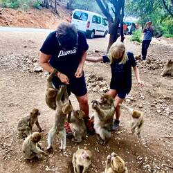 Und plötzlich waren sie da - zuerst eine kleine Gruppe von Berberaffen und dann … das Touristen-Empfangskomitee bestehend aus Erdnuss-Verkäufern (zum Füttern) und Reitern mit geschmückten Pferden, die einen durch den Wald führen wollten. Aber so aus der Ruhe des Waldes dort eintreffend, nahmen wir von dem ganzen „Trubel“ (überbevölkert war es nicht) eher Abstand und versuchten mit den uns so ähnlichen Geschöpfen in Kontakt zu kommen. Es war faszinierend wie „menschlich“ Gestik und Mimik sein konnte. Einzig die Aufzucht der Kleinen ist doch etwas anders - da man nämlich nie genau weiß, wer der Vater der Affenbabies ist, muss jeder Mann sich um jedes Baby mitkümmern … was da bei uns los wäre?Läs mer