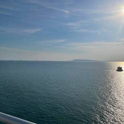 So our last day today and we’ve spent it at sea, full steam ahead towards Southampton. Mostly cloudy but mild and the occasional outburst of sunshine but warm enough to be in shorts and a t-shirt.