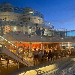 A late departure tonight so we decided we’d sail away whilst in the hot tub, the medallion app isn’t working on Sharon’s phone to get drinks delivered, but there is a workaround which seems to work pretty well once I’ve got it going. Sharon just gets out of the hot tub and walks across to the bar, then returns with said drinks. Works equally as well 😂😂.