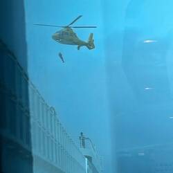Unfortunately, we only managed an hour or so due to a serious incident, Someone was very poorly and needed to be airlifted to hospital. A helicopter was sent from Holland to airlift them off to hospital. The back of the ship had to be completely evacuated so we were asked to leave the tub which we did gladly. We headed back to our room to get changed and we’re just in time as that was evacuated too. So we moved on to the bar !! The sun was out so we headed for the central decks which were still open. We were able to see the helicopter arrive and hover over the ship and perform the airlift. Take our hats off to these guys,the crew of the ship and the coastguard were fantastic, let’s just hope the person is ok.