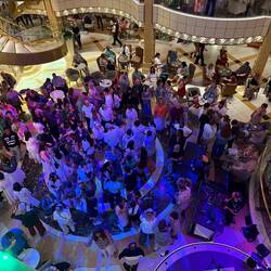 We did very little this afternoon, nodded in and out consciousness whilst watching a bit of TV before wandering back to the Atrium to watch a circus act. Was actually quite funny. There does appear to be a larger number of children on here than normal, hence the no hot tub use as yet. Formal night tonight do normally around 5pm the decks are clear, not today !! So we headed down to the theatre to watch Rock Opera. Everything’s a bit different, the theatre would usually be packed, it was very quiet. The show though. Brilliant. I’m not normally one for the shows but it was very very good.