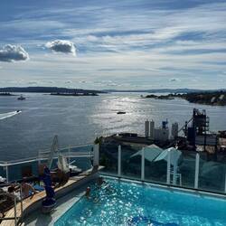 Light breakfast this morning on the deck, I did this as I knew I’d be on the ship all day and probably wouldn’t stop eating. After breakfast we wandered down to the Atrium which was very entertaining. We ended up being there pretty much until lunchtime. Firstly there was a crew versus passengers game of giant jenga on but to spice it up they had to identify songs and if the team did it correctly, the other side had to go. Was very funny, the cruise director very confident and very good - but they lost and the passengers won !! Next the dancers came on and did a little show and finally, quite a few if the staff came out for a big thank you. It was brilliant, not really seen that before. Every single member works so hard, is always friendly and always has a smile. Brilliant morning.
