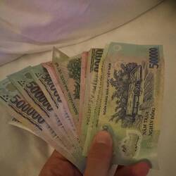 Von der einen auf die andere Sekunde Millionär ... Leider nur am vietnamesischen ATM. Wir sind happy über den tollen Empfang in Hanoi 🇻🇳