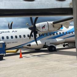 Nächster Stopp: Mit dem kleinen Propellerflieger ging’s rüber nach Koh Samui! ✈️ Hier wartet ein traumhaftes Hotel direkt am Strand — alles richtig gemacht beim buchen.
