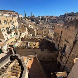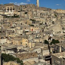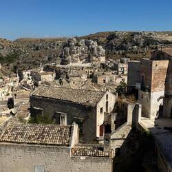 In Matera sehen wir die zum UNSECO-Weltkulturerbe zählenden, in Tuffstein gegrabenen Wohngrotten, in denen noch vor wenigen Jahren Menschen lebten.