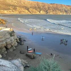 Direkt oberhalb des Strandes sitzen wir und genießen den Ausblick , das Meerrauschen und die tolle Atmosphäre.