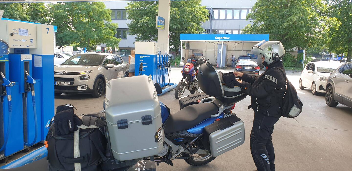 3 Passpunkte haben wir schon. Jetzt getankt und wir widerstehen der Versuchung mit den weichen Brotln mit bissl Gemüse und Fleisch drauf 😁