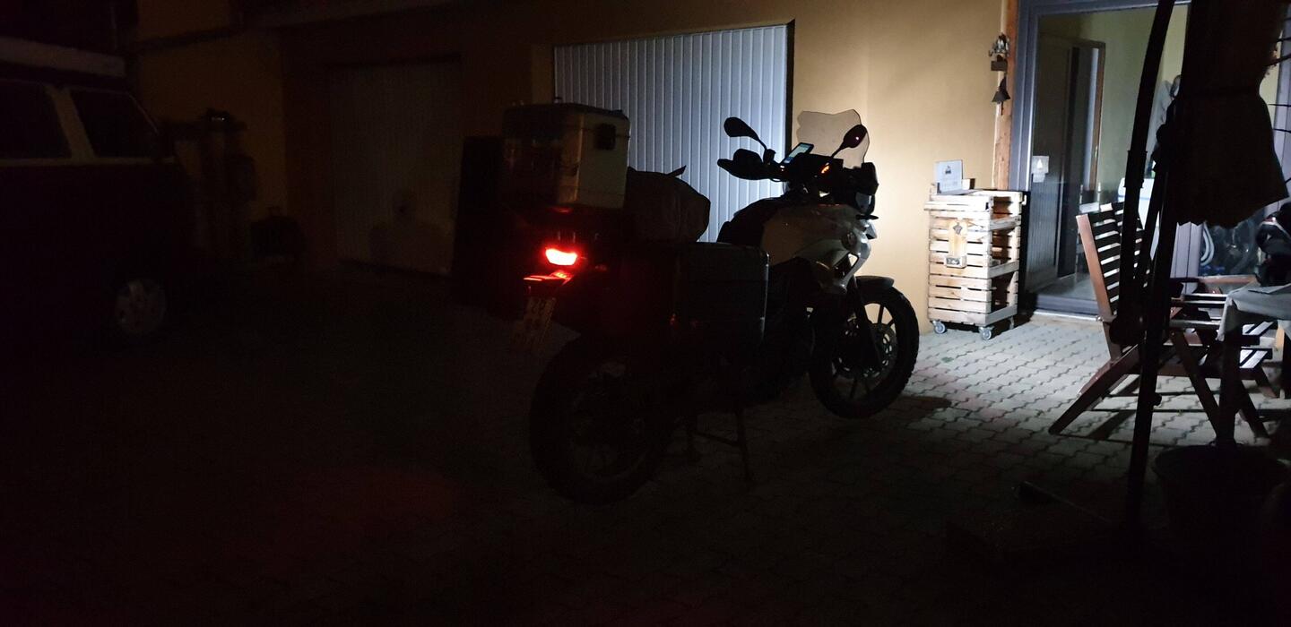 So, die letzte Übernachtung ist erreicht. Motorrad steht sicher.