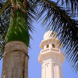 Retour à Salalah, visite de la tombe du prophète Imran (30 mètres !?!) et recherche d'un rocher dont on dit ici que les trous qu'il comporte sont les traces du chameau du prophète Salih. Le soleil est écrasant, c'est vendredi, personne dans les rues sauf des ouvriers sur un chantier qui nous font des grands signes.