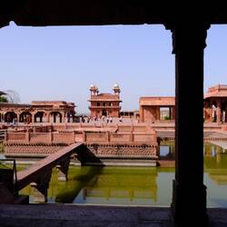 On commence par aller visiter Fatehpur Sikri, ensemble fondé par Akbar au milieu de la cambrousse. Khalid pète un câble car on lui demande de se mettre une sorte de corbeille en plastique cra-cra sur la tête pour rentrer dans un mausolée musulman. Au cours de notre voyage c'est bien la première fois qu'on demande aux hommes d'avoir la tête couverte dans un mausolée musulman, et pourtant depuis l'Ouzbékistan on les enchaîne. Mais quand on lui fait la remarque, le responsable des corbeilles en plastique est en mode erreur 404 - not found.