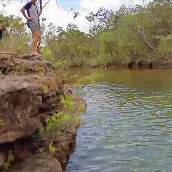 Ben jumping into Elliot Falls and David crossing Canal Creek