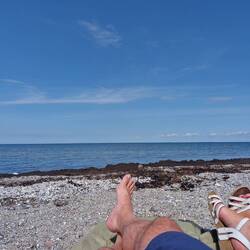 ПутешественникHad another great day, helped by the beautiful weather. We landed in a small harbour in the north of the island . We are literally in the middle of the harbour carpark, next to the harbour masters hut. We went for a lovely cycle on some free hire bikes from the harbour, part of the overnight bill. We went to the really posh end of the island and chilled on the beach. I just did dinner, which was salad, pasta, and some amazing smoked salmon from the local fish shop. Amazing. We dined to the sound of the Band warming up for tomorrow evening. There is some sort of Grill night on the Harbour front, just 10mtrs away from where we are parked. Lovely jubbly, looking forward to it already ;-)