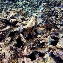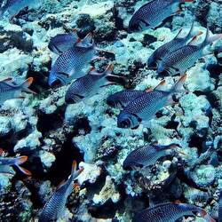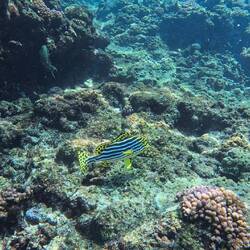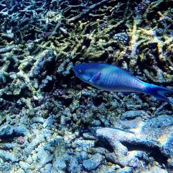 Mir hei e Schnorchu Usflug gmacht und üse erst Stop ish bir Big Sister Island gse. Dört hei mir ganz föu Fischli chönne beobachte i däm wunderschöne Riff. Leider ish wäge dr Klimaerwärmig dLue lisää
