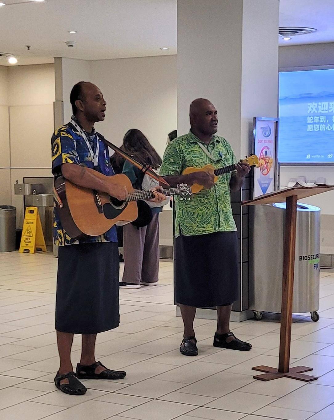 We arrived in the wee hours to Nadi, Fiji and a guitar player greeted us even though it was 530am.