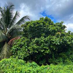 Vi åkte taxi någon mil söderut genom regnskog med banan-, mango- och brödfruktsträd till atlantkusten och Galleon beach. Här var det lugnt och skönt, mer stenig strand och bra snorkling. MångaLeia mais
