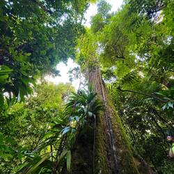 I dag hängde jag med på en guidad vandringstur i regnskogen. Fick massor av information om medicinalväxter, blommor och träd. Gigantiska ormbunkar och många bananträd. Det häftigaste var att viLeia mais