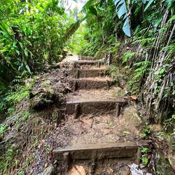 I dag hajkade jag och en guide till öns högsta vattenfall. Det var fuktig regnskog, lerigt och lurigt att ta sig fram ibland. Upp och ner över stock och sten. Jag fick hålla koll på var jag satteLeia mais