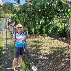 Frühstück im Schlosshotel war spitze und gut gestärkt ging es auf den Wanderweg nach Dresden. Auch diesmal konnten wir uns unterwegs von Kirschen und Walderdbeeren ernähren.