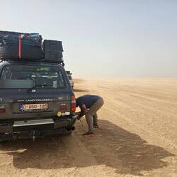 Een rit van ongeveer 150 km dwars door de woestijn. Uitdagend en veeleisend voor de auto's.