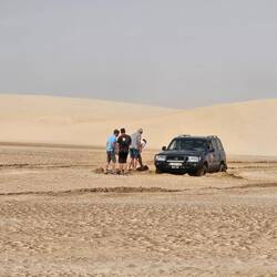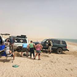 Een heel bijzondere ervaring, met de jeeps tussen de vissersboten die komen en gaan.