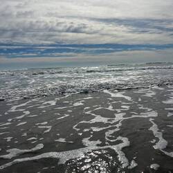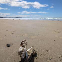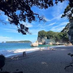 Hahei Beach: ein toller Sandstrand mit angenehmer Wassertemperatur. Hier schlafen wir nur eine Düne vom Strand entfernt. Es gibt riesengroße Wellen und starke Strömungen.
