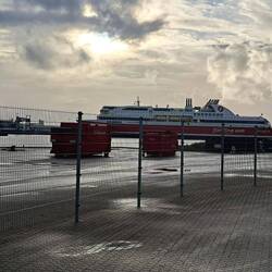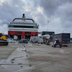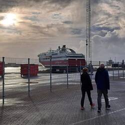 Waiting to board the ferry. It was very chaotic with people queuing in the wrong place, including us. But we boarded in the end and now we are off to Norway. The 6th country for this trip.