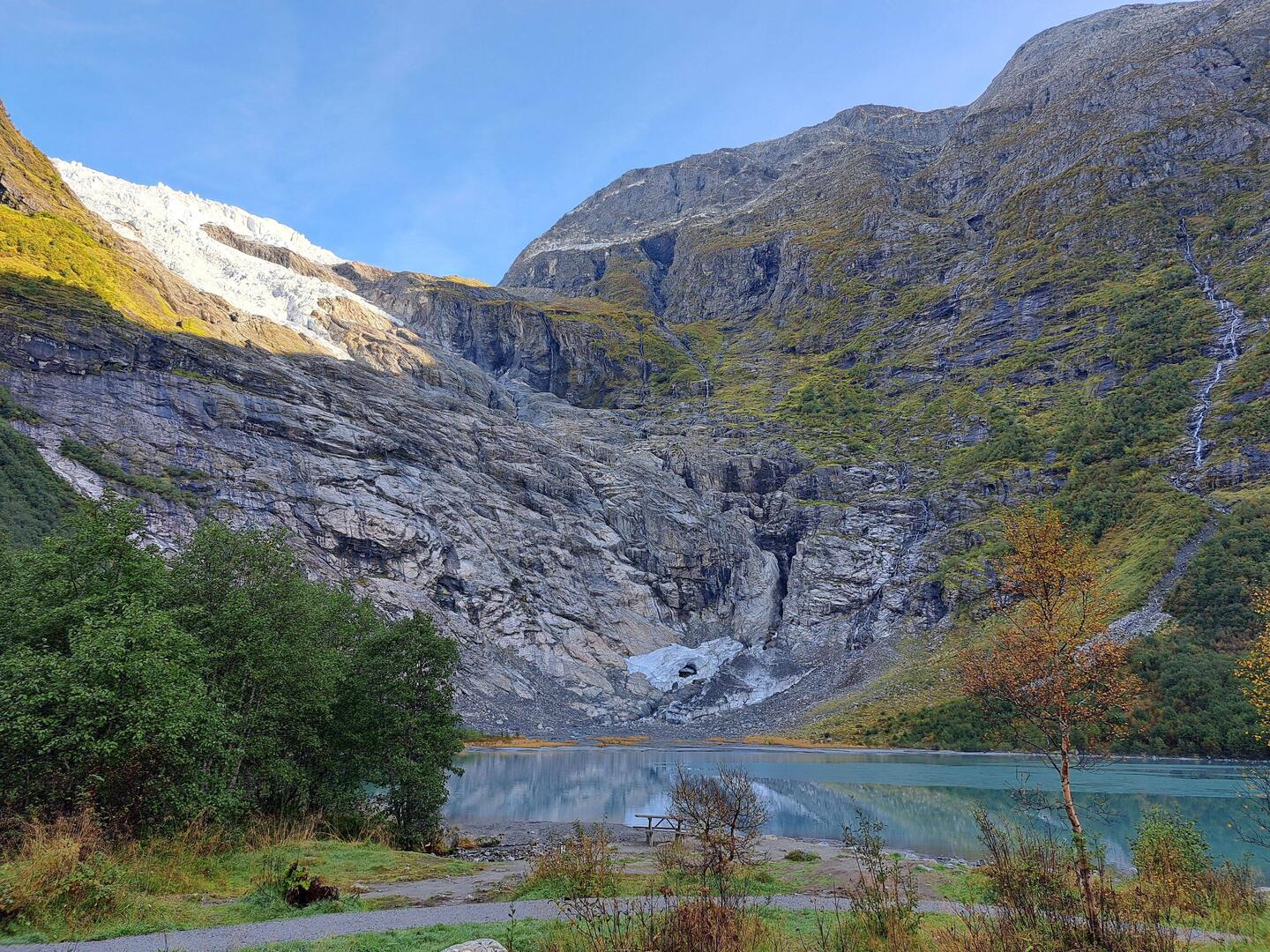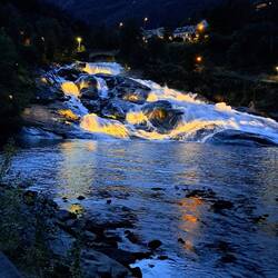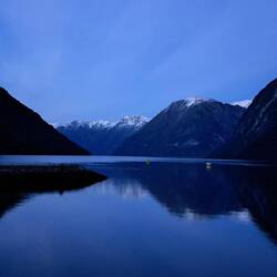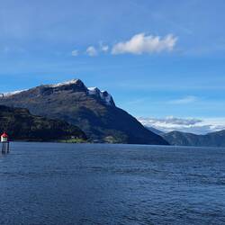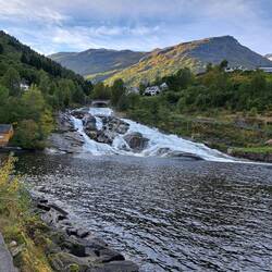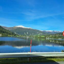 On the shore is a motorbike in a glass box. This is the motorbike which Tom Cruise used in a stunt in one of the Mission Impossible films, never seen them. He rides it over the mountains opposite and parachutes down - the town's claim to fame!Læs mere