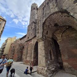 Heute gibt es also einen Bonus Tag für in Barcelona, der eigentlich nicht geplant war. Doch diese Stadt ist so schön, dass wir noch nicht genug von ihr haben. Der Weg ins Zentrum geht jetzt schon ganz leicht. Dann eine kleine Runde durch den Park und anschließend erstmal Frühstück jagen. Wir finden ein kleines süßes Straßen Café. Der Kaffee zieht einem die Schuhe aus aber die herzhaften und süßen Croissants sind zum dahin schmelzen! Gut gestärkt ist nun die 1. Anlaufstelle ein Handyreparaturladen. Mein Stecker zum Laden ist kaputt und zeigt immer an, dass Feuchtigkeit dein ist obwohl das nicht sein kann. Der Laden liegt in einer Gegend in der wir gestern schon waren. Also spazieren wir zielstrebig und entspannt. Die Jungs warten artig draußen und die etwas längere Wartezeit bis wir an der Reihe sind scheint sich zu lohne. Die Verkäuferin sagt uns, nach einem kurzen Telefonat mit ihrem Mechaniker, dass wir in einer Stunde wieder kommen können und dann ist es repariert. Für nur 34€. Wir kaufen gleich noch eine powerbank bei ihr und fragen ob sie die für uns laden kann in der Zeit. Auch das ist kein Problem. Super nett! Nun wird also eine Stunde lang durch die Gassen der näheren Umgebung spaziert, gar kein Problem. Es gibt viele kleine Verkaufsstände. Das Ein oder Andere Mitbringsel finden wir auch. Heute ist übrigens der 1. Tag wo man nicht direkt komplett klebrig ist, wenn man draußen ist. Total angenehme 25-27°C mit einem schönen Sonne Wolken Mix. Trotzdem ist es für sie Jungs natürlich anstrengend. Als wir so an einem Blumengstand vorbei gehen zieht Baloo nach rechts und will aus dem Blumentop saufen. Ich bitte ihn höflich zurück. Doch die Blumendame hat es gesehen und holt direkt 2 große Eimer voll Wasser unter ihrer Theke hervor. Sie stellt sie den Jungs vor die Nasen und sie tun so als hätten wir ihnen den ganzen Tag noch nix gegeben. Dabei machen wir wirklich sehr regelmäßig Trinkpausen. Wahrscheinlich schmeckt das Blumenwasser einfach besonders gut. Während die zwei also versuchen so viel Flüssigkeit wie Möglich aus den Eimern in sich ein zu saugen, reden die Blumendame auf sie ein und streichelt sie. Alle beiden reagieren super positiv aus sie. Ein schöner Moment. Als wir dann nach einiger Zeit zurück gehen zieht mich Baloo übrigens genau bei ihrem Laden wieder rüber und sie holt direkt wieder freudestrahlend die selben frisch aufgefüllten Eimer raus. Verrückt wie er sich das in diesem Gewusel von Ständen nach dem 1. Mal gemerkt hat. Es gibt hier unzählige Blumenfrauen aber nur diese ist jetzt seine Wasserlieferantin .