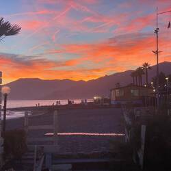 Also geht es dahin. Die Landschaft durch die wir fahren ist wirklich wunderschön. Straßen schlängeln sich die Berge hoch, auf der linken Seite ist das Meer, an den Berghängen sind überall noch kleine süße Stadthäuser und überall sind Palmen und an den Balkonen bunte Blumen. Der andere Campingplatz ist leider schon komplett belegt. Aber auch hier werden uns gleich 3 Alternativen aufgeschrieben. Wirklich super lieb die Italiener! Wir versuchen gleich die dichteste, nur ein paar hundert Meter weiter. Als wir auf den Platz fahren schüttelt die Frau vom Empfang entschuldigend mit dem Kopf. Ich frage sie ob sie nicht irgendwo eine Ecke hat wo wir uns hinstellen können, wir brauch nix außer einen Platz zum stehen. Sie signalisiert mir aus zu steigen. Englisch spricht sie nicht aber Händisch und Füßisch super. Sie zeigt uns eine Art Notplatz. Dicht am Eingang aber groß genug für Henry. Den nehmen wir sofort und sind ihr sehr dankbar! Wir dürfen erstmal einparken und alles und dann zu ihr kommen zum einchecken. Wir werden scheinbar nicht so richtig offiziell abgerechnet, denn es ist das 1 Mal seit Reisebeginn das wir unsere Ausweise nicht zeigen müssen. Aber das ist uns ja völlig egal. Wir sind froh einen Platz zum schlafen gefunden zu haben. Sie zeigt uns alles, auch wie wir abends durchs Fußgängertor kommen wenn der Platz zu ist und dann sagt sie uns noch wo der Hundeplatz am Strand ist. Total lieb und super freundlich. 2 Duschmarken bekommen wir auch noch gratis.